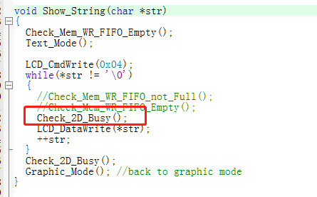 (一)修改延長void Show_String(char *str)函數(shù)中的讀忙改為Check_2D_Busy();