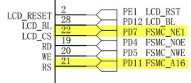 連接DB[15:0]、CS、WE、RD等信號(hào)線。