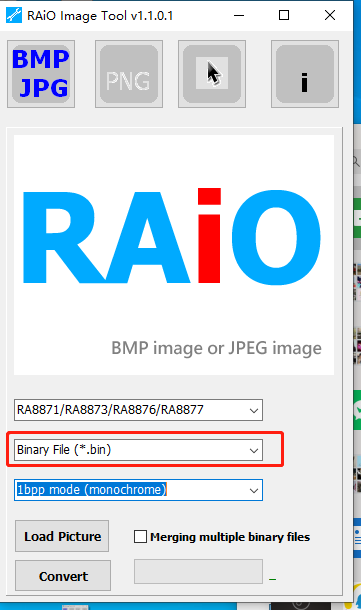 第一步:通過瑞佑的轉(zhuǎn)檔軟件將圖片轉(zhuǎn)為bin檔并燒入FLASH
