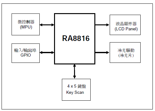 RA8816N-T:內(nèi)建繁體中文字庫(kù)