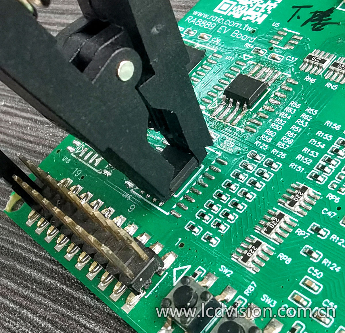 TEST1接3.3V的作用是拉高后,RA8889與FLASH的連接腳就設(shè)定為高阻態(tài),可將FLASH釋放出來給外部燒錄器使用: