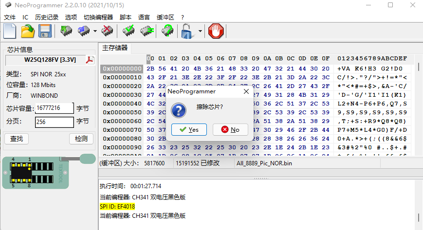 工具:CH341A,這個工具很容易獲取,用戶可以自行在網(wǎng)上采購到,這個工具如何使用請參考商家提供的說明書及軟件。這種燒錄器一般輸出是3.3V電壓,和RA8889的開發(fā)板芯片電壓相匹配,這點請用戶在使用前提前確認(rèn),以防燒毀。我買到的樣品參考: