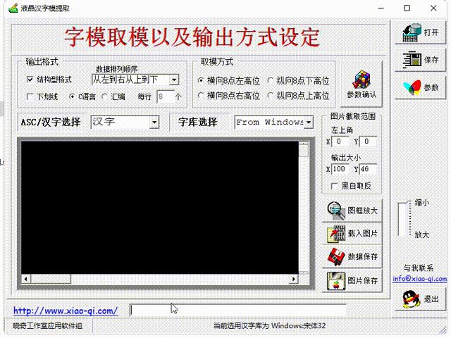 第一步、使用軟件生成字模,該軟件可從本站下載鏈接獲取,字模尺寸任意,比如32x32點(diǎn)漢字選擇24字號,在“輸入字串”前的空格填寫所有漢字,然后點(diǎn)擊該圖標(biāo)立即生成點(diǎn)陣字模,最后保存。用戶也可以使用16x16,48x48等大小,只要存儲空間夠用就根據(jù)需求來做。若這種方法空間不夠,請與我們聯(lián)絡(luò)獲取技術(shù)支持,我們會推薦其它方法。