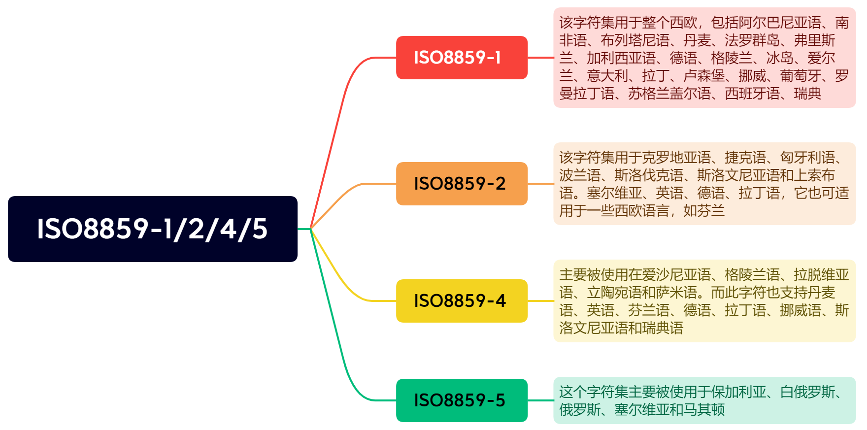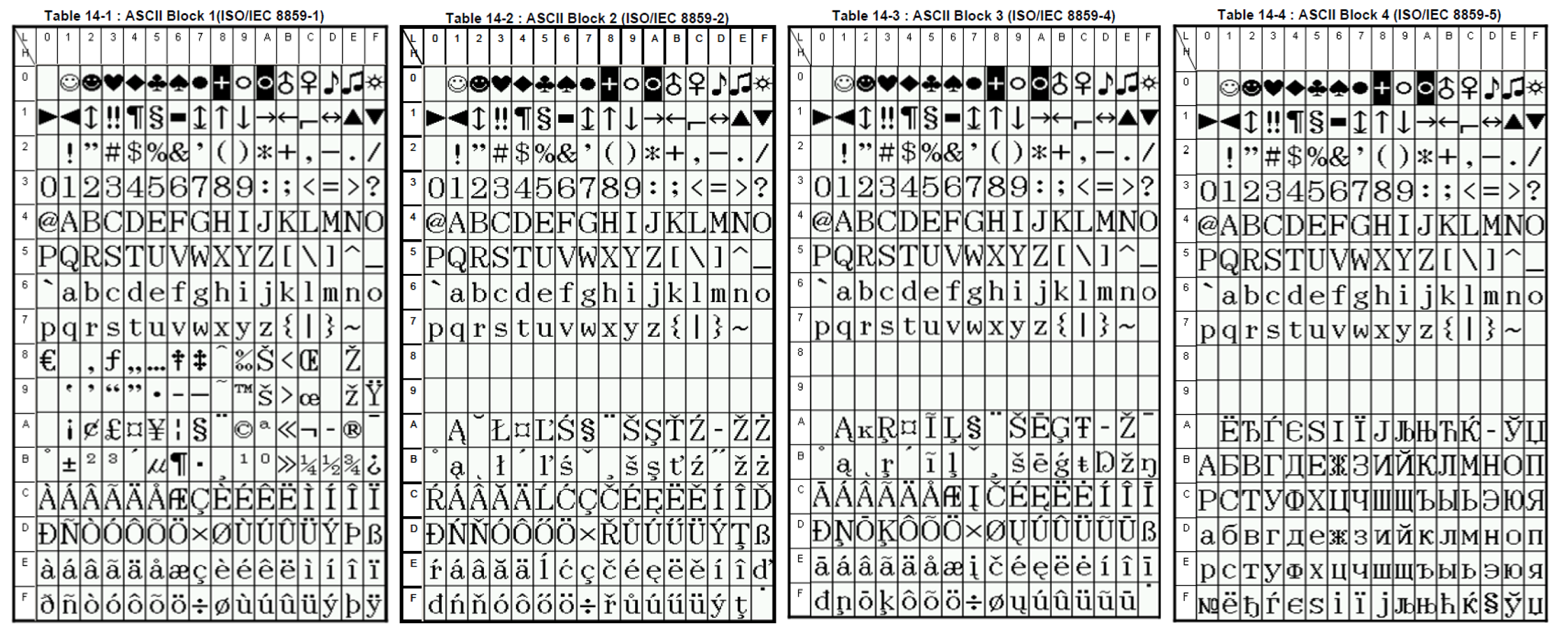 RA8889內(nèi)建了ISO/IEC 8859-1/2/4/5字符集,各字符集先簡(jiǎn)要說(shuō)明一下: