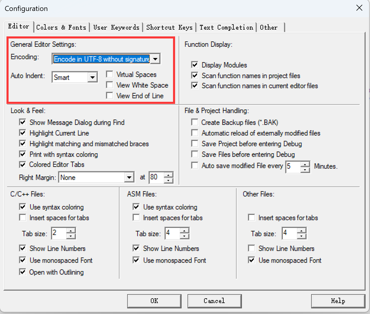 注意到了嗎?文字是亂碼!該文件是使用Keil打開(kāi)的,即使我們將編碼改為UTF-8,顯示出來(lái)一樣是亂碼!Keil內(nèi)核編碼支持還是有限。