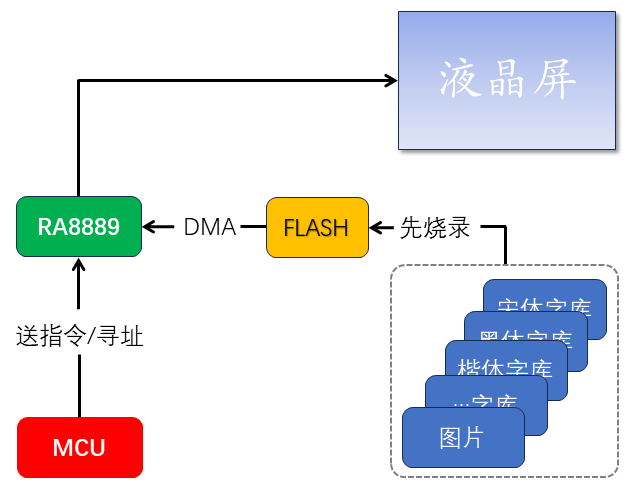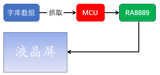 UI界面需求最大的兩個功能,第一個是顯示圖形,第二個是顯示文字。文字部分有ASCII和中文,或者是多國語言,下面我們就專門針對RA8889如何顯示文字展開介紹。本章要介紹如何自建中文字庫,以及單片機如何控制RA8889進行調(diào)用并顯示。