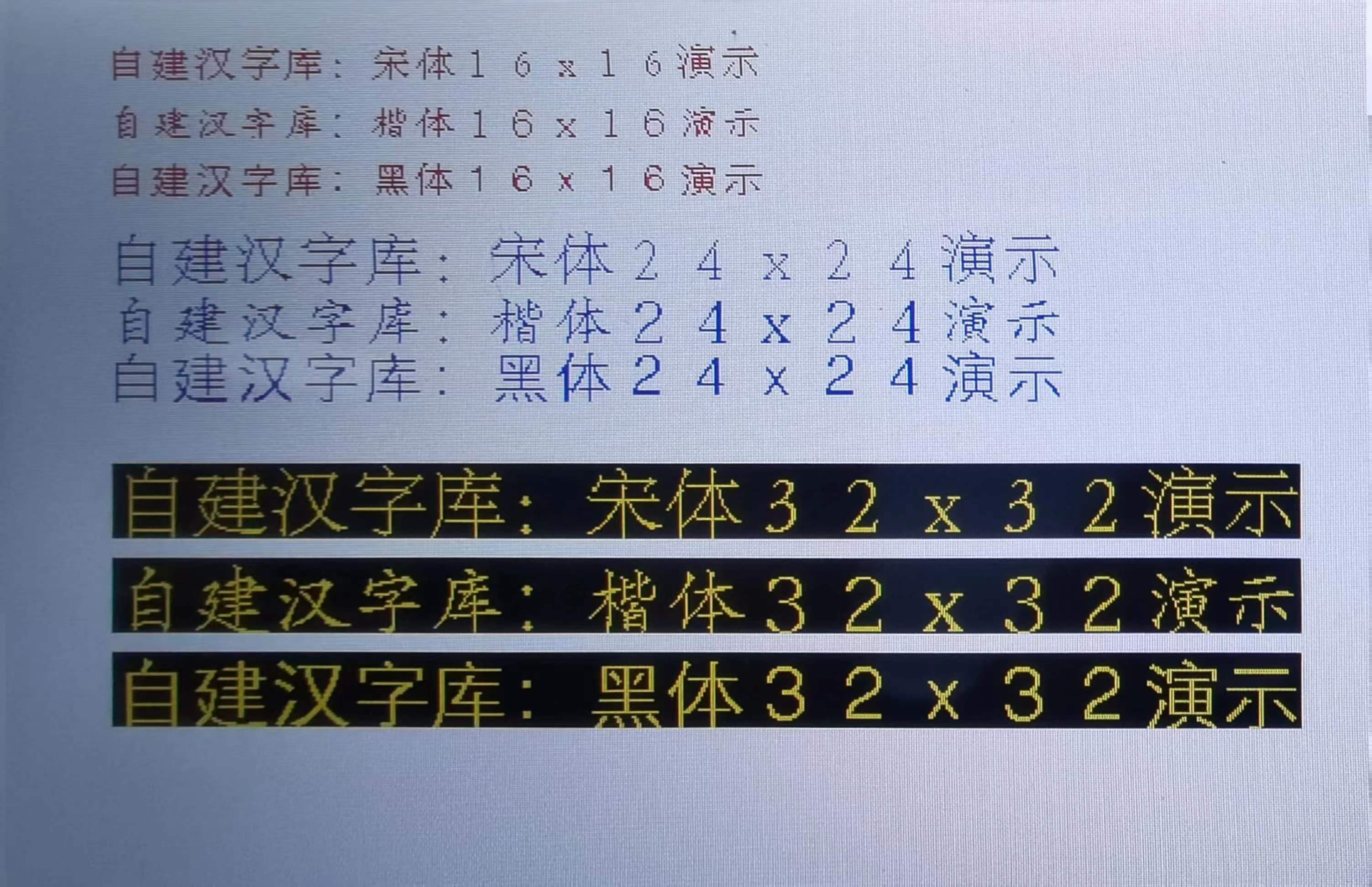 Show_User_Font(25, 32, 260, 260, 1, color65k_black, color65k_red, "單片機驅(qū)動彩色液晶屏極簡方案");